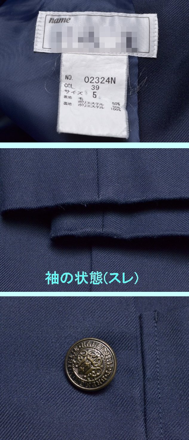 ●ブレザー:5 肩幅42cm位 着丈66cm位 胸周102cm位 袖丈58cm位