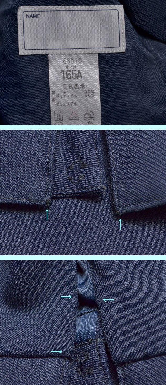 ●セーラー服:165A 肩幅41cm位 着丈45cm位 胸周96cm位 袖丈59cm位